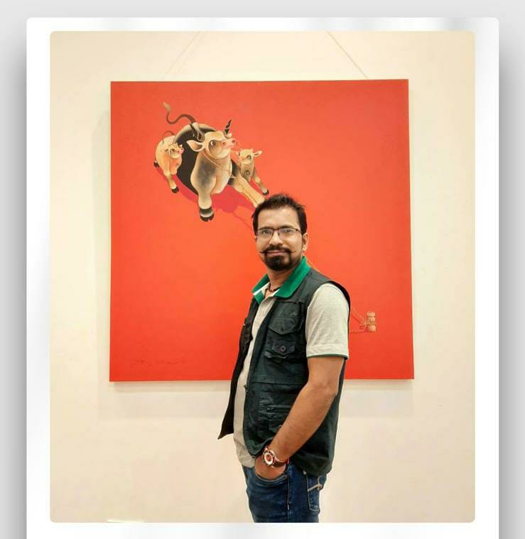 H R Das born in 1972,Itla, Purba Bardhaman (W.B) Education:M.F.A from Karnataka State Open University, Mysore, B.F.A. from Indira Kala Sangit Vishwa Vidyalaya,Khairagarh,(C.G.), B.Sc. from University of Burdwan (W.B.) Solo Shows 2017 - Love n Affection, ICA Gallery , Jaipur, 2016 - The Magnificent Bull, Lalit Kala Akademi , New Delhi, 2016 - The Bulls, Gallery Splash , Gurgaon, 2012 - Nandi, Jahangir Art Gallery ,Mumbai 2008 - Suchitrra Art Gallery, Mumbai 2008 - Jahangir Art Gallery , Mumbai 2007 - Art Entrance, Mumbai: 2006 - Bajaj Art Gallery, Mumbai 2004 - Nehru Centre Art Gallery, Mumbai. Duo Show : 2019 - Paradise Lost, Jahangir Art Gallery , Mumbai