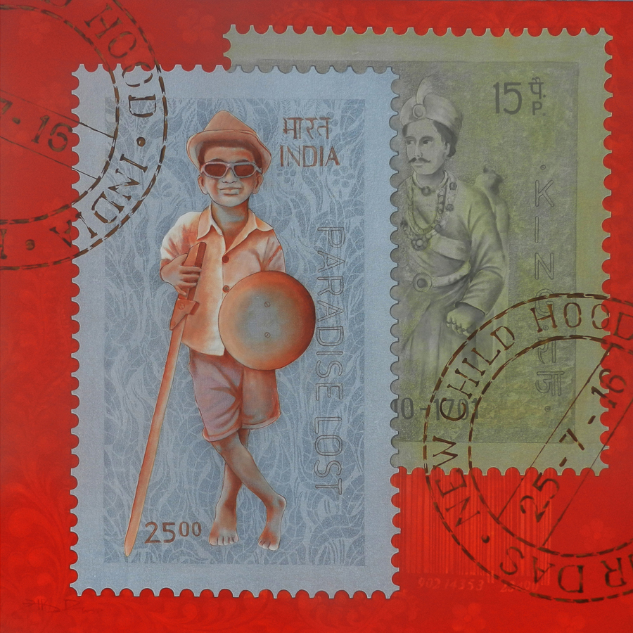 While some artists tend to overlook the background, treating it as a mere support for their central theme; H.R. Das, treats it like a stage setting in front of which his characters perform. They may recede and be dismissed as props, but his backgrounds still command attention, the intricate tapestry effect and mute lines provide a vibrant milieu that serve to highlight the interactions between the main players of his magnum opus.